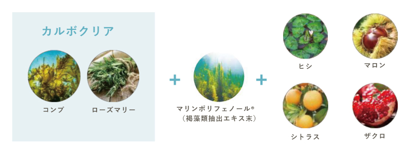「カルボクリアMP」は7種類のエキスを配合したメーカー独自の酸化・糖化・カルボニル化対策素材です。