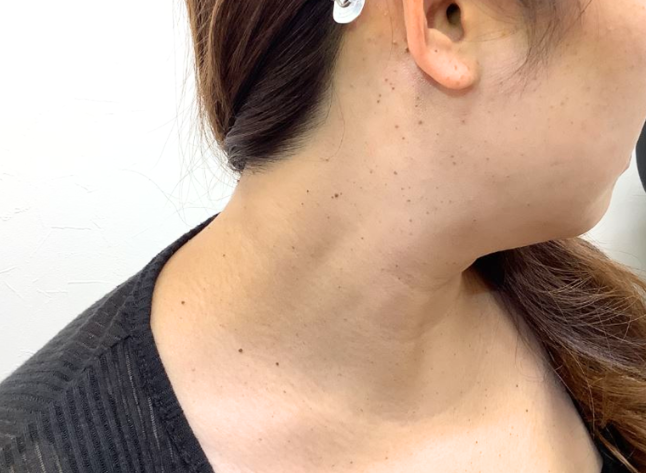 お首全体にあったイボがほぼ目立たなくなっています(ほくろは除去希望なし)。